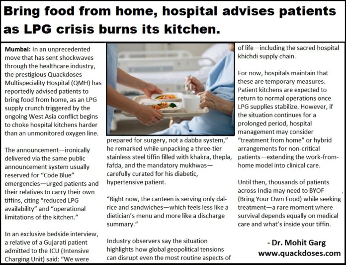 Scoop 89 : Bring food from home, hospital advises patients as LPG crisis burns its kitchen.