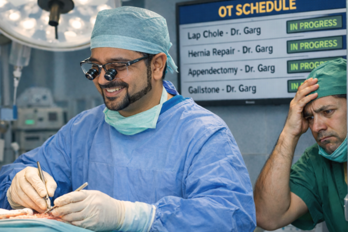 It is a well-known fact that surgeons in such setups are often far more invested in their colleague’s OT list than their own. Multiple sources confirm that a significant portion of the working day is spent discreetly tracking which physician is referring the maximum number of surgical patients, whether admissions are originating from the OPD or the emergency, and—most critically—whether the hospital’s business development team is “favoring” a particular surgeon.